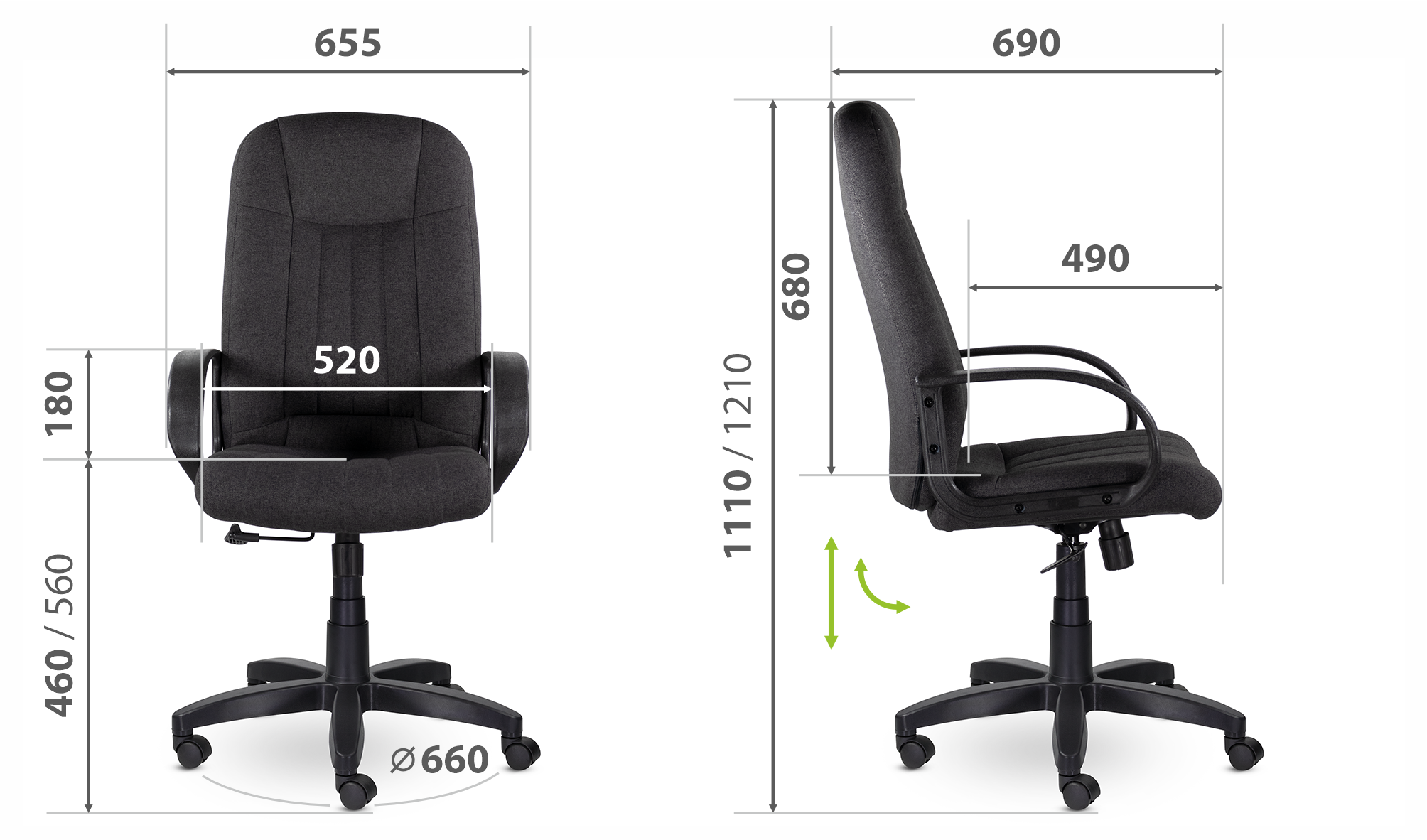 Кресло руководителя с мягкими увеличенными подушками. Широкая эргономичная спинка имеет две горизонтальные прострочки, которые отделяют подголовник от основной части спинки. Благодаря глубокому сидению, в кресле будет удобно человеку среднего и высокого роста. Длинные пластиковые подлокотники способствуют комфортной посадке в кресле.